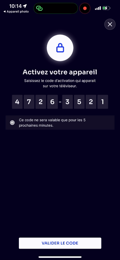 - Cliquez sur « Valider le code » pour activer l’appairage de votre compte à l’application TF1+ sur votre box